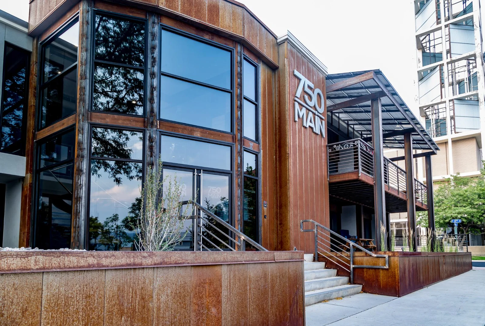 From the moment you approach, the building’s rust-toned exterior and expansive glass walls demand attention. The angular geometry and double-height glazing elevate the structure into a sculptural centerpiece, reflecting the progressive character of the businesses it houses.
