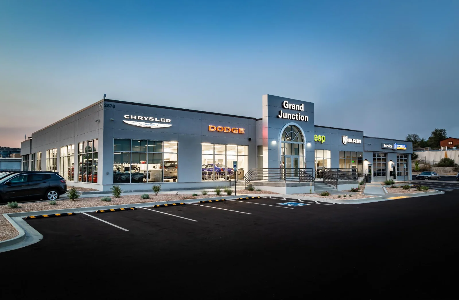 KRAAI DESIGN presents Grand Junction Dodge, a sleek and contemporary commercial dealership located in Grand Junction, Colorado, that delivers a bold statement in auto retail architecture.