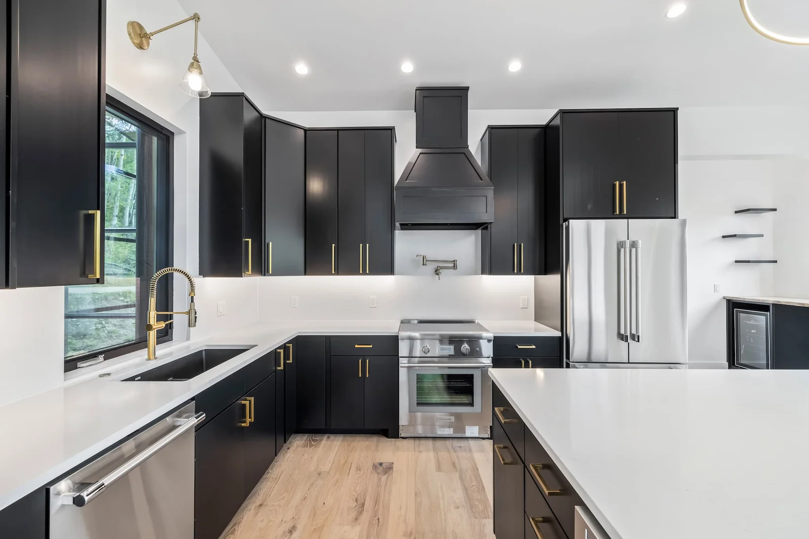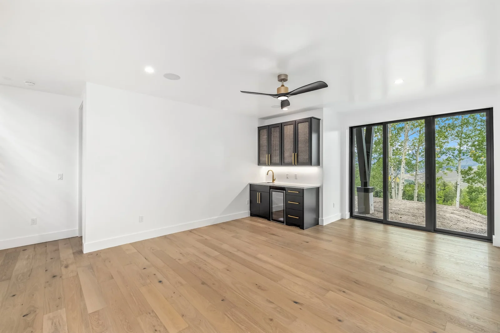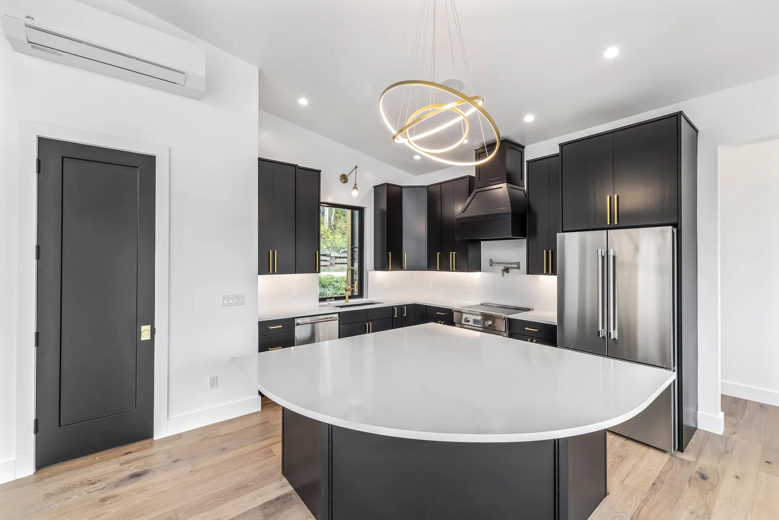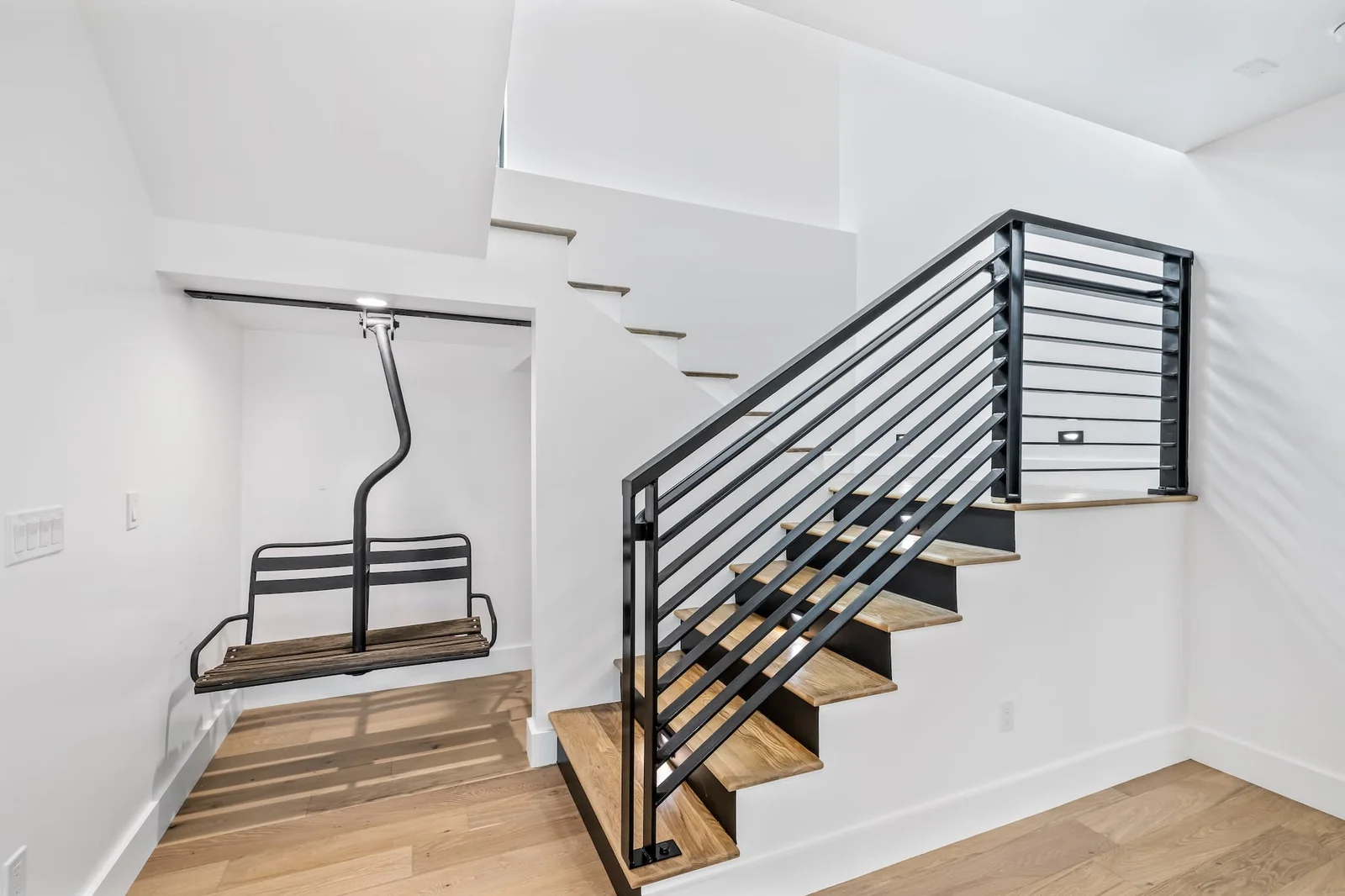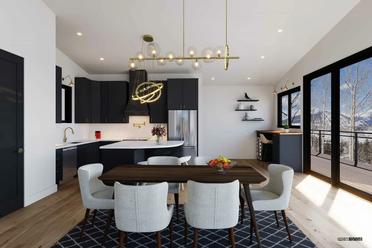 Positioned on an elevated site with breathtaking views, the Ruby Drive home features clean architectural lines, a balanced mix of natural wood and dark cladding, and a structure that appears to float above the landscape. The bold, asymmetrical rooflines and expansive glass panels seamlessly integrate the home into its alpine surroundings while creating an inviting, light-filled interior. Ruby Drive exemplifies Kraai Design’s approach to merging refined aesthetics with high-altitude functionality and comfort.