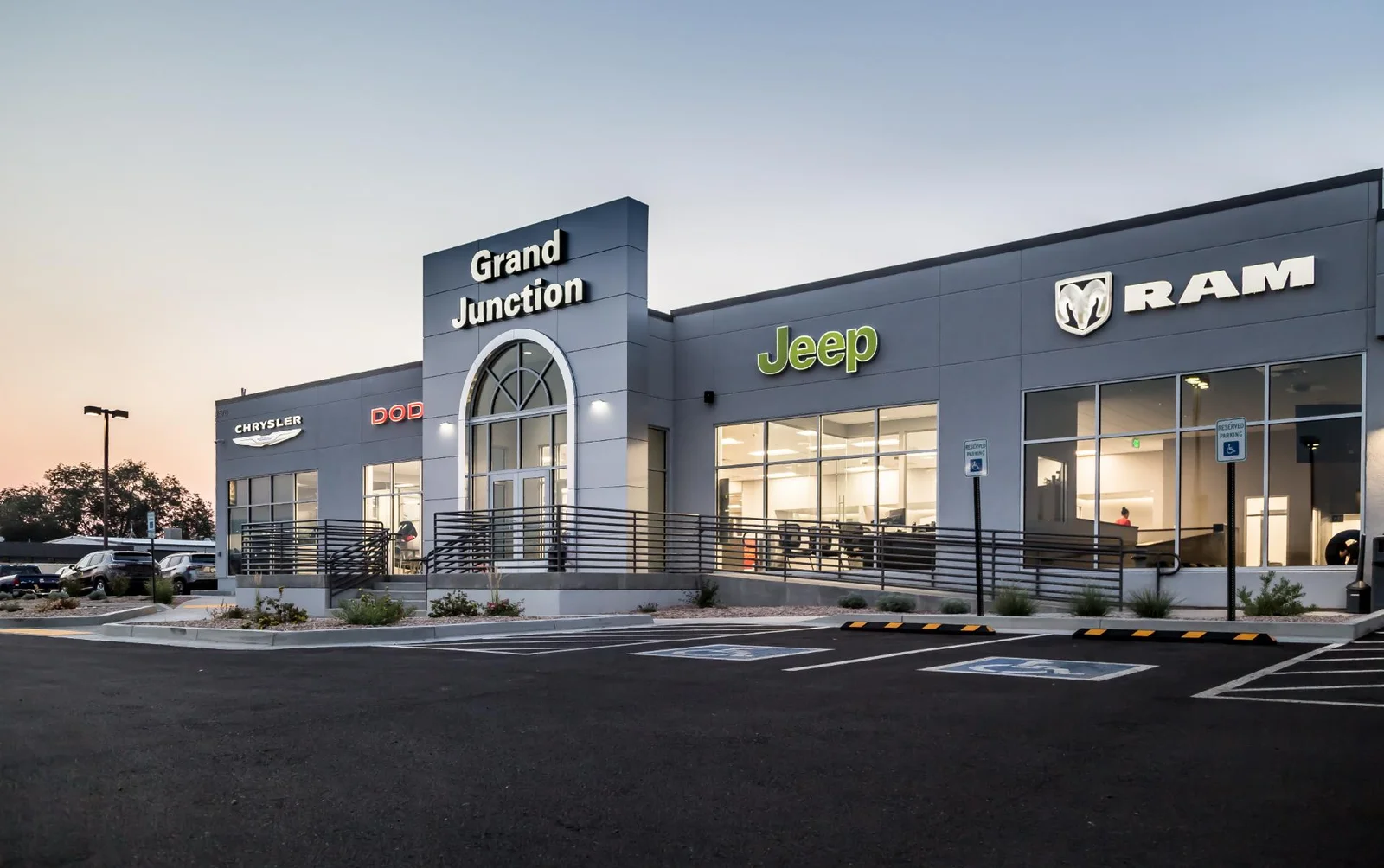 KRAAI DESIGN presents Grand Junction Dodge, a sleek and contemporary commercial dealership located in Grand Junction, Colorado, that delivers a bold statement in auto retail architecture.